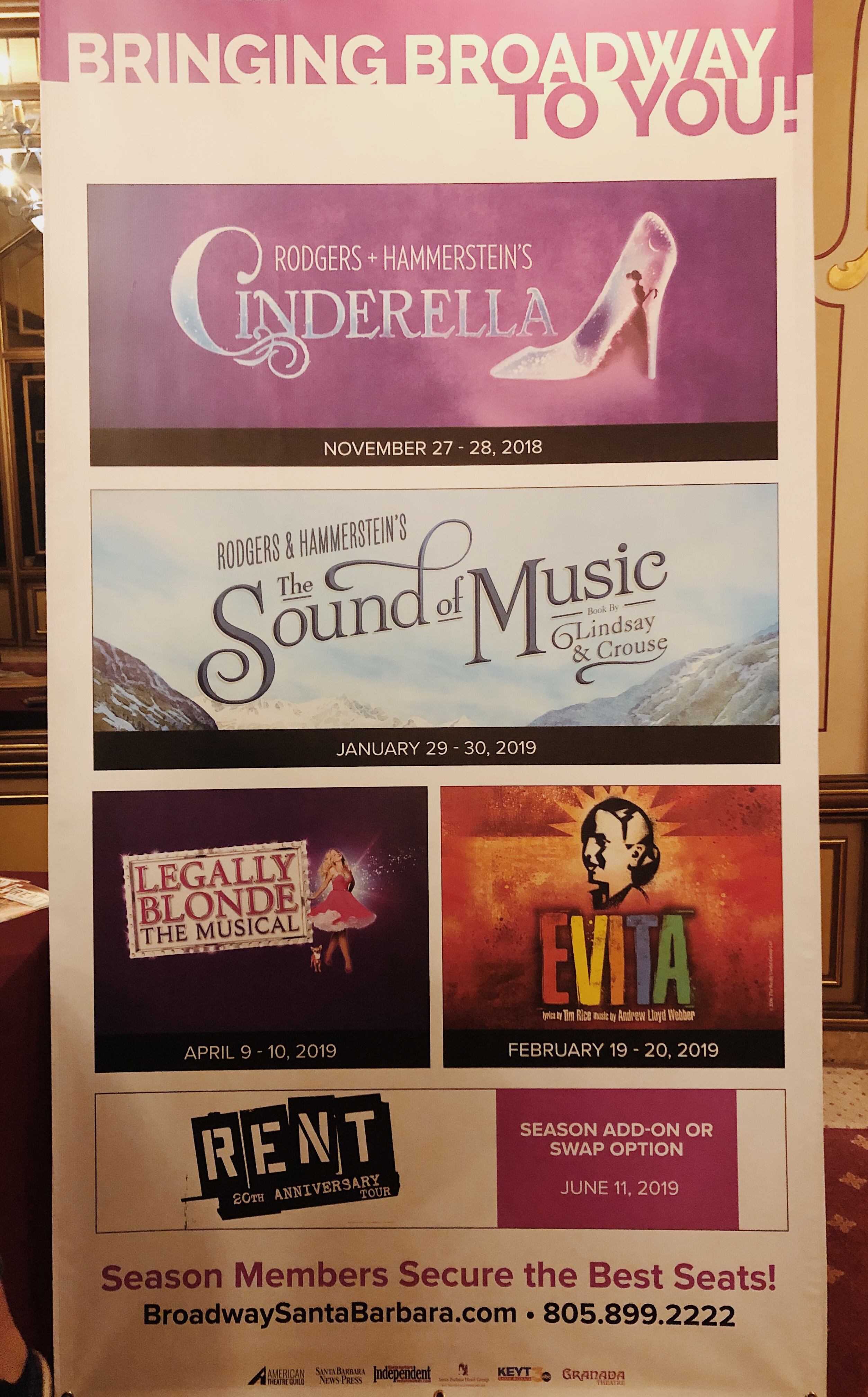 The Granada is doing a whole broadway themed season. They already did one show, Cinderella, and there are more to come like Legally Blond and Rent. If your interested you should go to their site and get some tickets, you wont regret it!