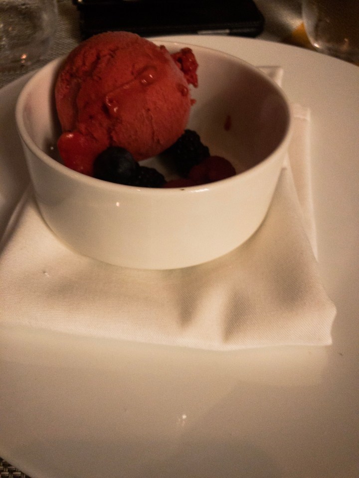 For dessert, I got a raspberry sorbet with berries. It was so tasty! They brought it really quickly and I must say that it was one of the best sorbets that I have ever had.